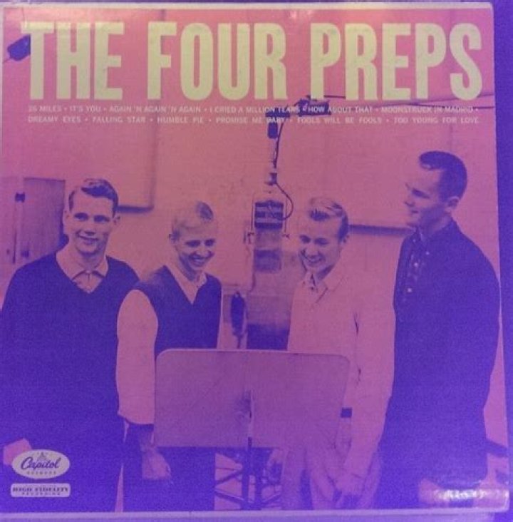 The Four Preps are an American popular music male quartet. In the 1950s, 1960s, and 1970s, the group amassed eight gold singles and three gold albums. Its million-selling signature tunes included "26 Miles," "Big Man," "Lazy Summer Night," and "Down by the Station."The Four Preps' numerous television and motion picture appearances included four years on Ozzie and Harriet backing heartthrob Ricky Nelson and with Sandra Dee in the Gidget movie. Their most recent television appearance was with the award-winning 2004 PBS special, Magic Moments: The Best of 50s Pop.The current incarnation of The Four Preps features the original lead singer, Bruce Belland, Bob Duncan (formerly with the Diamonds and The Crew Cuts), Joe Dickey (of The Crew Cuts), and Skip Taylor. Their shows are currently an amalgamation of singing everything from doo-wop to Tin Pan Alley standards and comedy.